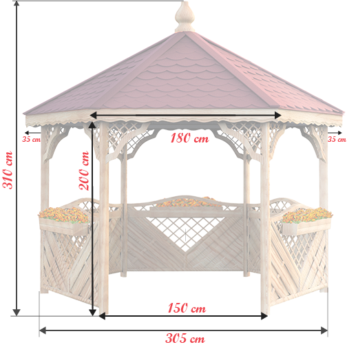 Základné rozmery altánku sú 305cm x 305cm.